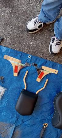 Misc Harley parts. Seat, Sissy bar, Mufflers, Eagle pipes etc. Cleaning out garage. Don't know much about them. Make reasonable offers. Will sell all or separately.
