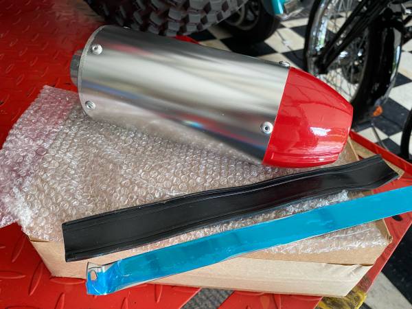 Everything fits a variety of Motorcycles / Atv's / Quad's & Dirt bikes. Stop light comes with plate mount & mounting hard wear, ((( these stop lights originally used on vintage Vincent’s and Harley motorcycle. ))) $25.00. Muffler also, $25.00