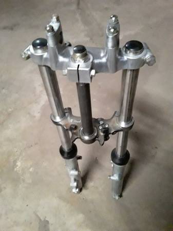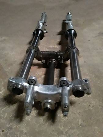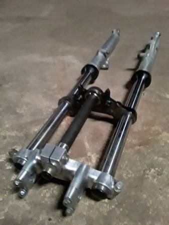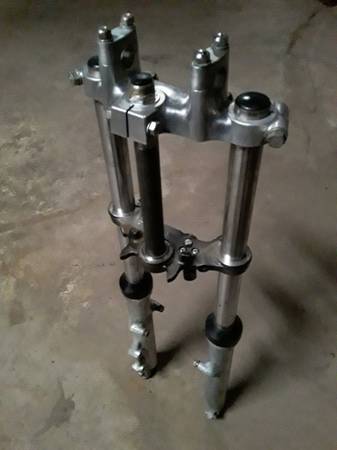 Complete front forks set up for vintage Suzuki GT250 motorcycle . It comes with both tubes and the mounting tree stem included plus the frame mounting bolt and the handlebar mounting clamps . No issues and both absorbers are working perfectly and very smooth on it . This was from a mid 1970's motorcycle and there's no leaks on either tube . Take a look at the included pictures and let me know if you have any questions about them . I also have the frame , factory wheels , wiring harness and some other parts still available and listed separately on here .