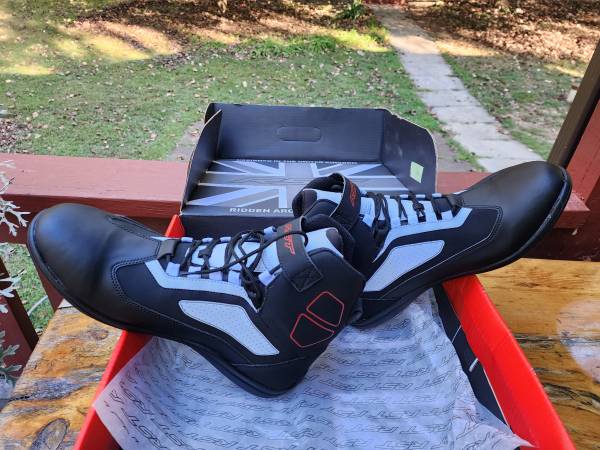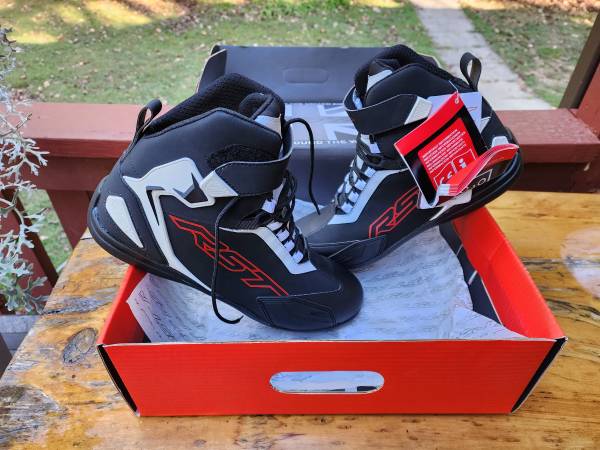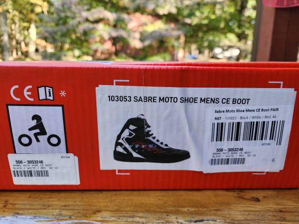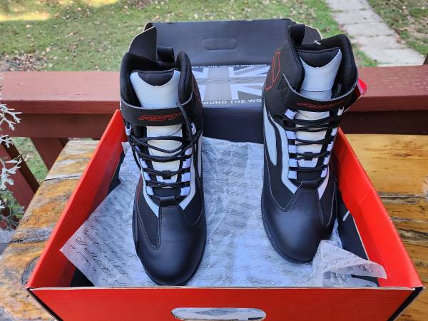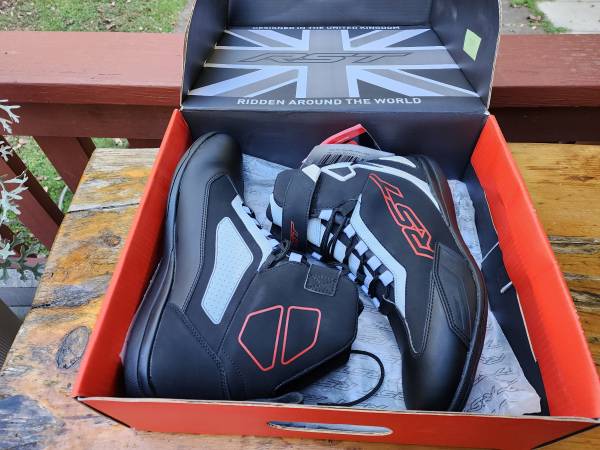 RST Sabre motorcycle boots new in box. Never worn. US size 12, UK size 11. Still has tags attached. $90.00 or best offer.