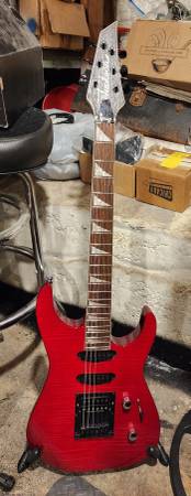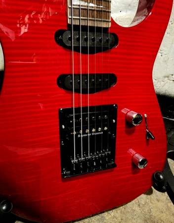 This is a 1 off custom Professional level Jackson guitar. Flame maple top. 3 x 3 headstock w/ custom finish. Chunky custom neck profile with a flat 16" board radius. Neck is bound. Daddario Auto Trim locking tuners. Roller nut. 2 stacked single coils. Seymour Duncan JB humbucker. Modern telecaster bridge. CTS pots. Switchcraft jack. Orange drop cap. Treble bleed. Frets dressed. Action and intonation set. Daddario 10-46 strings. First $800 gets it. Firm.