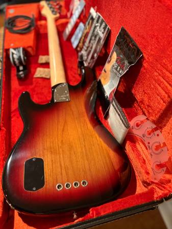 American Deluxe Fender P Bass / Maple Fret Board with Original Fender HSC . I purchased this bass new in 2007. I have the original sales receipt and everything that came in the case the day it was purchased as pictured. It has lived in, and never left my Non-smoking home. No dings, scratches, etc. If you need more pictures please email me through Craigslist. If this Ad is up, it is available. Please also find my Ad for the Line 6 Modeling Amp that I purchased at the same time.