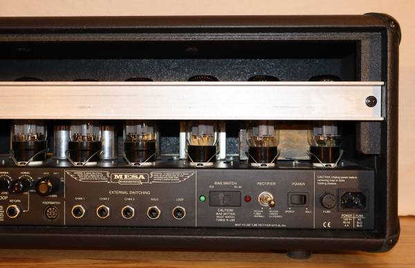 You're looking at the holy grail of LOUD! Perhaps the loudest production amp ever. 150 massive all tube watts from SIX 6L6GC power tubes, enough power to guarantee you'll be heard in the next zip code. THREE 5U4GB tubes in the rectifier and five 12AX7s in the preamp. Three foot-switchable channels, each with independent three band EQ, Gain, Master and Presence. Channel one switches between Clean and Pushed for low gain tones. Vintage channels 2 and 3 switch between Raw, Vintage and Modern for every range of gain from slight dirt to all-out nuclear devastation. That's EIGHT distinct tonal voicings at the flick of a switch! Add in a Solo boost, overall Master, variable Line out, extensive effects looping options, 6L6 or EL34 biasing switch, tube or solid state rectification switch, Bold or Spongy switch, five button footswitch, extensive external switching jacks, and 4, 8 or 16 ohm operation. Everything you could ever imagine in an amp! And did mention it's loud? No other amps define loud like Mesas, and no other Mesas define "loudest" like thee Trip Rect! These amps are getting harder to get your hands on. Grab this one while you have the chance.