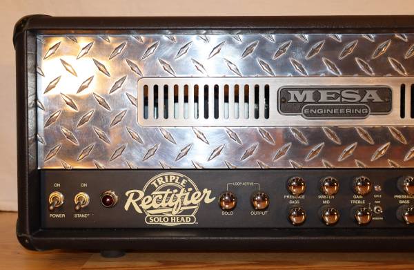 For sale, one Mesa Boogie Triple Rectifier Solo Head 150 Watt All Tube Guitar Amplifier Head with five button footswitch, cable and soft case in excellent, near mint condition with new tubes! Works perfectly. Breathes atomic fire.