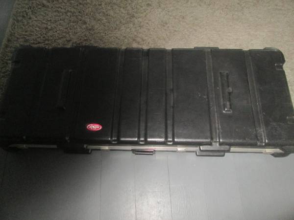 case is 62x25 built like a tank eight inch full hinges on bottom are good lt and rt folding hinges on sides have been repaired rivets have been replaced with screws work fine all handles and wheels good cheap price for such a well made case trying to upload pics