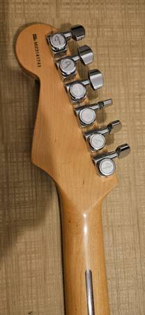 has two noiseless pickups in the neck and middle position. the bridge is just a regular pickup. had the pickguard changed to black, comes with the white ones too. has fender locking tuners on it. look at the pictures ask any questions you want before buying.