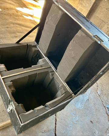 storage trunks.xtremely durable, lightweight road and flight cases manufactured by the company Anvil. These cases are specifically designed to protect valuable equipment, like musical instruments or broadcast gear, during air travel and other demanding transportation. Foam padded and could be removed. On wheels.