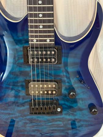 I have a Brand New Ibanez GIO GRX7OQA Electric Guitar for sale. The color of the Guitar is Transperent Blueburst. Very cool color. The Guitar comes with a Maple neck/ solid body with quilted maple art grain and a gloss covered body. It comes with InfinityRS Pickups along with a single coil. It has 2 ceramic magnet humbuckers. The guitar has 22 frets and has a length of 25.5" Controls are 2, 1 volume, 2 master tone. This guitar comes with a cool Blue durable Gig bag to match the guitar. I am asking $160 for the pair. I paid $320 for both guitar & Gig bag. This guitar would make a great Christmas present for a beginner or intermediate player just to have some fun with. I will include pictures for this post. Please only Seriously interested contact me. Thanks Jay.