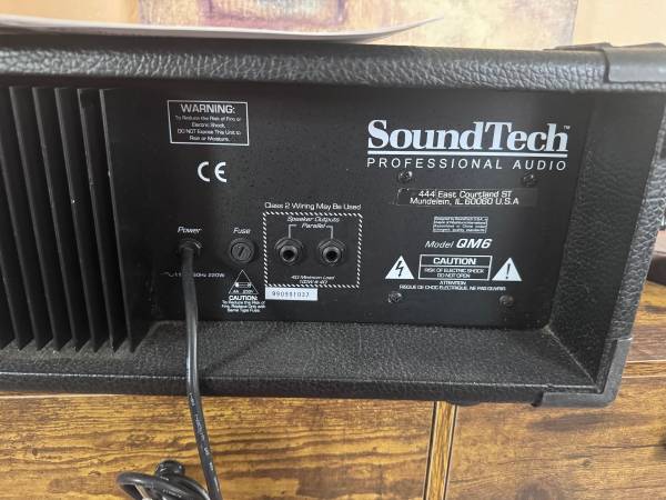 Used six-channel powered mixer. The volume knob cap on Channel 3 is missing, but the pot still functions.