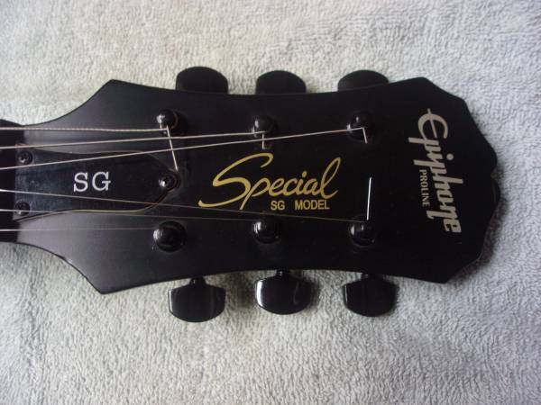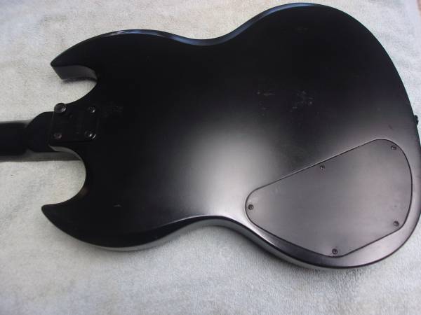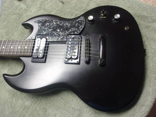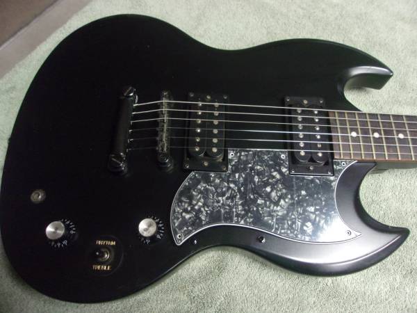 Lightly played flat black epi Goth SG Special w/ hardcase. Bridge pickup a little weak, so hot bridge epi pickup included (16.2). New, black pickguard also included (see pic). . Great, Origional condition. will ship or deliver. see my other great items.