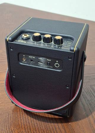 This little guy packs a punch! It's a great little practice amp that gets reasonably loud, perfect for a bedroom or apartment. A great feature is the app has amp modeling, and allows you to customize effects and even download from an endless library of custom effects settings designed by other users. I have dozens saved, from early Metallica to modern rock and blues with delays, reverbs, compression, etc. Runs on battery, or plug it in. Battery lasts hours. Search for videos about this thing. You'll be amazed!