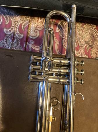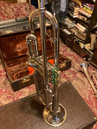 None of the trumpets that I sell need any work to be playable. They all have been gone over, been ultra-sonic cleaned and repairs made accordingly. I DON'T SELL ANYTHING THAT DOESN'T PLAY. Prices are based on many factors but mostly on what level of quality the horn is. ( student, intermediate, or pro level) Some older horns were considered a student horn back in the day but are considered an intermediate with today's standards. I sell a lot of Olds Ambassadors which were a student horn 50 years ago but are a high end intermediate today. Many pro players use the Ambassador as a back up horn. Next price factor is cosmetics. If a horn has very few dings and the lacquer is bad, I will strip the old lacquer off, buff the horn, and re-lacquer it or leave it bare brass. Relacquer adds $100 to the horn's price. The result is a brand new looking horn that looks great and plays great. If there are too many unsightly dents I will sell the horn as-is which reduces the price by about $100. It will play just as good as the previous horn but isn't as appealing to the eye. And then there is the prestine horn, which are very scarce. This horn is 50+ years old and sat in a closet most of it's life. These horns bring much more money, being all original. Expect to pay much more for this one. Of course each horn will be priced on an individual basis.