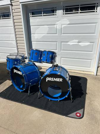 I am the original owner of these 1991 Premier Resonators and am ready to part with them. They include 2- 24” bass drums, 1-18” floor tom, 1-15” floor/ tom, 1-13” tom, 1-12” tom and the 2 center mounts for the bass drums and 3 floor tom legs. The inner shells have never been removed. The color is ‘Volvo blue’ per Premier factory and was not available to the general public. I wanted that color specifically to match Rod Morganstein’s set so I was able to special order them since I worked at Waddell’s drum store at the time. Top of the line set at the time. You will never find a matching set because it does not exist. One of a kind from a time when Yamaha owned the factory in England. Finnish birch shells. Original hard cases included