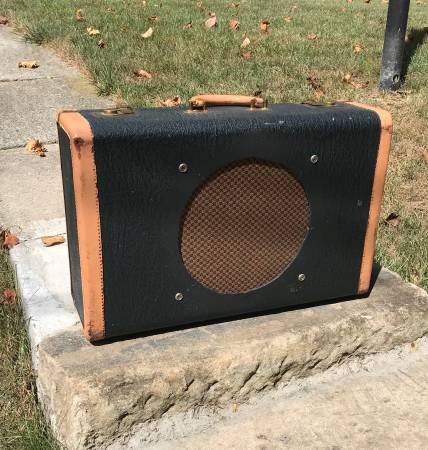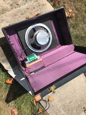 Cool combo amp made out of a small suitcase. Has a 10” speaker driven by a Hotone Freeze high gain amp. Sounds really good and gets louder than you would think.