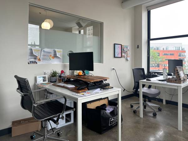 We offer 24/7 keyless access, super fast wi-fi, mail service, office supplies, color printing, shredding, glassboards and whiteboard walls, ADA bathrooms with showers (and bike racks inside and outside), a furnished kitchenette on each floor, and fresh coffee from local roaster, KLVN. We have both huddle rooms and meeting rooms reservable at no charge, as well as 1-2 phone booths on each floor.
