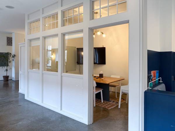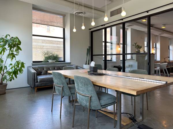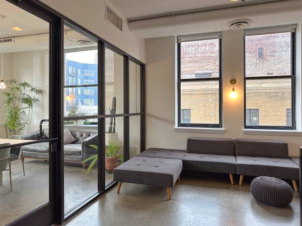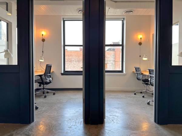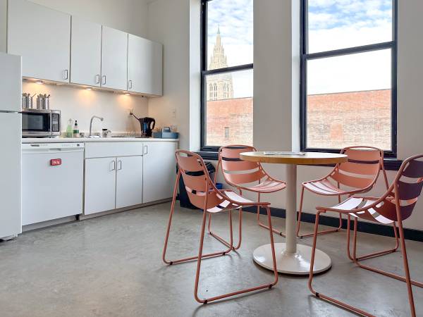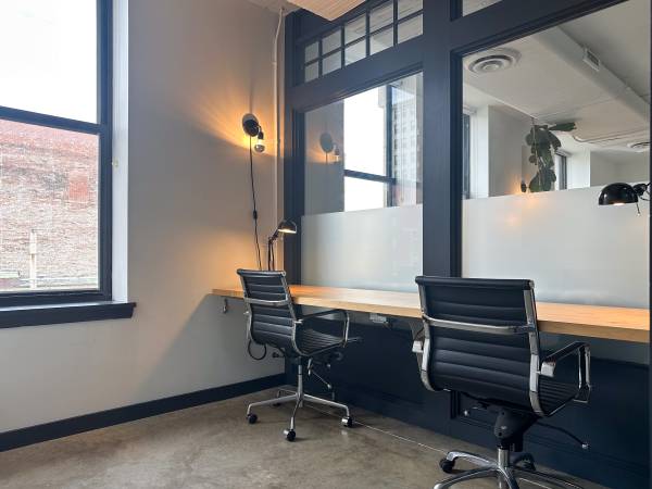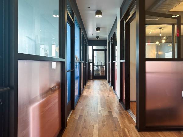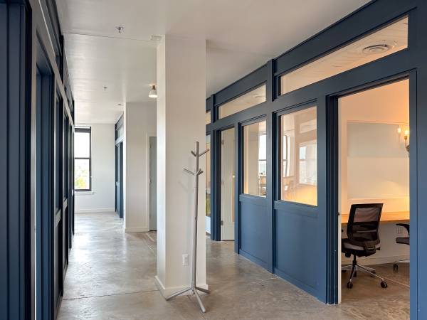 We offer 24/7 keyless access. Also, super fast wi-fi, mail service, office supplies, color printing, shredding, glassboards and whiteboard walls, ADA bathrooms with showers (and bike racks inside and outside), a furnished kitchenette on each floor, and fresh coffee from local roaster, KLVN. We have both huddle rooms and meeting rooms reservable at no charge, as well as 1-2 phone booths on each floor.