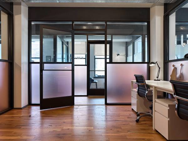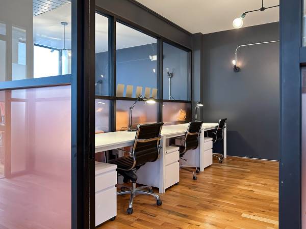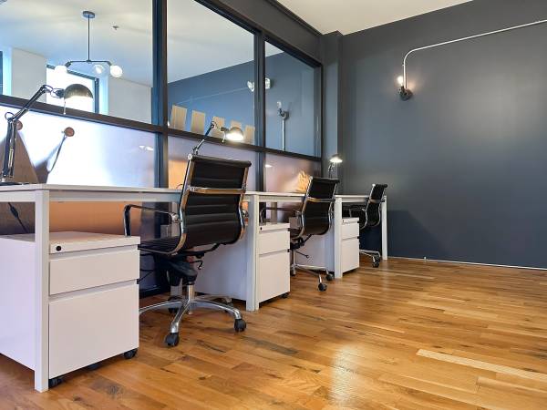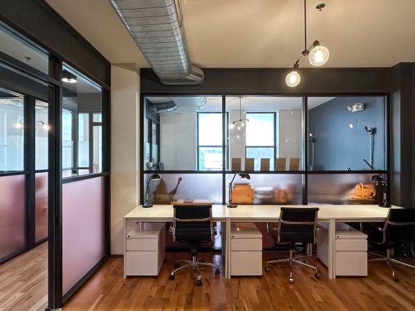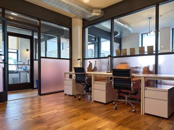 We offer 24/7 keyless access, super fast wi-fi, mail service, office supplies, color printing, shredding, glassboards and whiteboard walls, ADA bathrooms with showers (and bike racks inside and outside), a furnished kitchenette on each floor, and fresh coffee from local roaster, KLVN. We have both huddle rooms and meeting rooms reservable at no charge, as well as 1-2 phone booths on each floor.