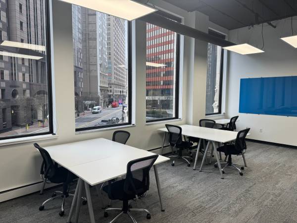 This impressive suite offers sweeping views of downtown Pittsburgh and a dedicated huddle room equipped with a Smart TV, ideal for client meetings and team collaboration.