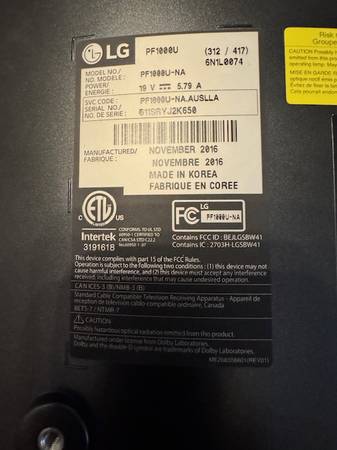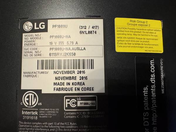 Lg Cinebeam Ultra Short LED Projector LG PF1000U Projector With Remote. Has internal TV tuner so you can connect your cable or TV antenna to it. Watch your favorite movies on a screen from 60 to 120 inches diagonal.