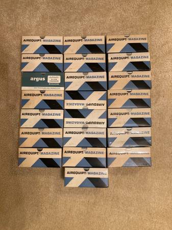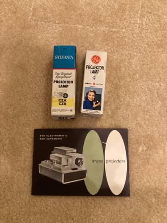 Argus 500 automatic slide projector with working lamp 1 lot of 22 Airequipt/Argus Slide Magazines - each magazine holds 36 slides 2 CZA-CZB Lamps NOS - lamps tested and work