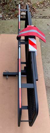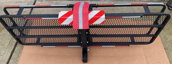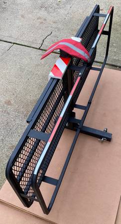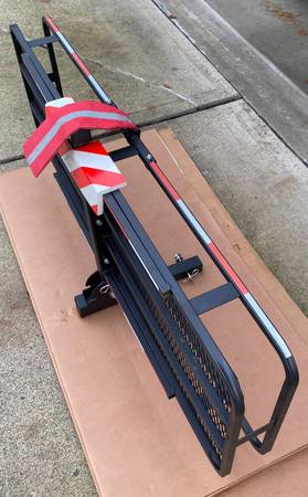 Bike rack attachment can be removed or re-installed horizontally rotated when not needed