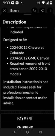 Descriptions in photos. Brush Guard for 2004-2012 Colorado and Canyon New in box $300 firm Phone calls only! Tom