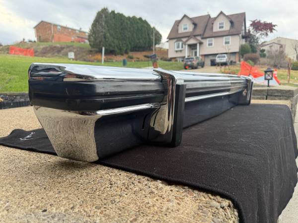 Very clean bumper. No rust through. Very light scratches in chrome. Rubber strip and bumperettes in good shape. Inner structure was cleaned and painted. 412-370-eight eight two four.