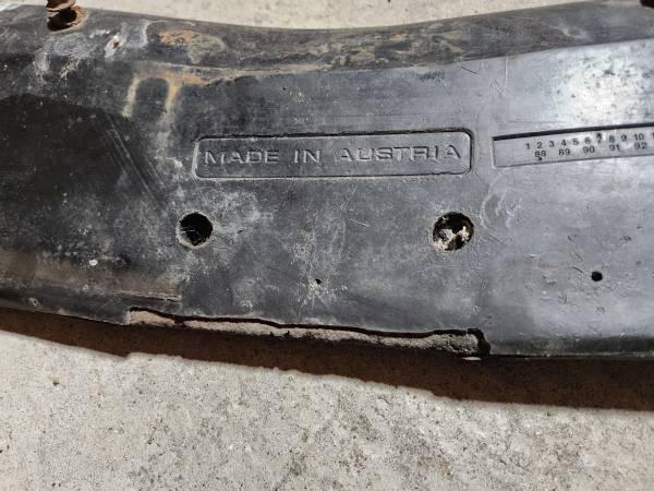 This is a vintagevGerman made Foba front spoiler that will fit E21, 76 to 83 BMW 320i. It is soft and pliable and in decent shape. Please look at the pictures well. The mounting bolts are still bonded to it. There is some damage but this piece is savable. Located about a half an hour south of Pittsburgh , Pennsylvania