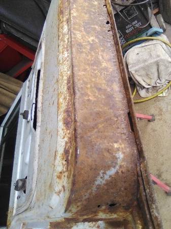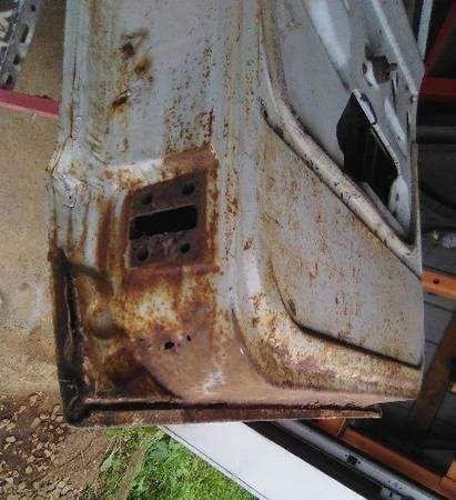 This is a 3rd door from a 1972 Chevy Suburban. It will fit 1967 - 72 Chevy or GMC Suburbans, but it is only correct for 1972. The window mechanism is different from the 1967 - 71 ones and it has the mounting holes for the 1972 plastic door panel. It has some rust on the bottom, but it is solid and fixable. The glass is included. The price is $300.