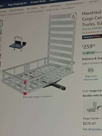 New MaxxHaul 80779 50 x29.5 trailer hitch mount aluminum cargo carrier with 47 in ramp for rvs,trucks,suvs,vans,and cars.500 lb capacityPrice is firm.