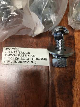 Nine Bumper Bolts , Chrome ( w/ Hardware) 1947-72 Truck / 1942-54 pass. car $20 Four Bumper Bolts 1/2-13x1-3/4. $8 All New