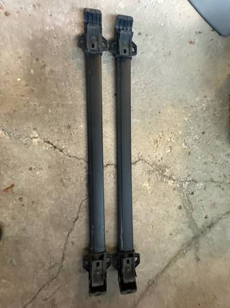 Roof rack cross bars for Jeep Patriot Chrysler WK/MK-74 Roof luggage carrier crossrail Chrysler Part #55157113AE #55157114AE #O5116470AC and MOPAR #82210804 Black color Good condition Installation...