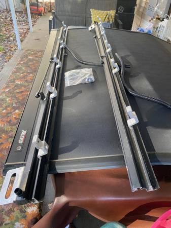 NICE HARD FOLDING COVER ALL PARTS FOR INSTALLATION ONE SMALL SECTION SEPERATING LOOKS LIKE EASY FIX FOR 5.5 FOOT BED