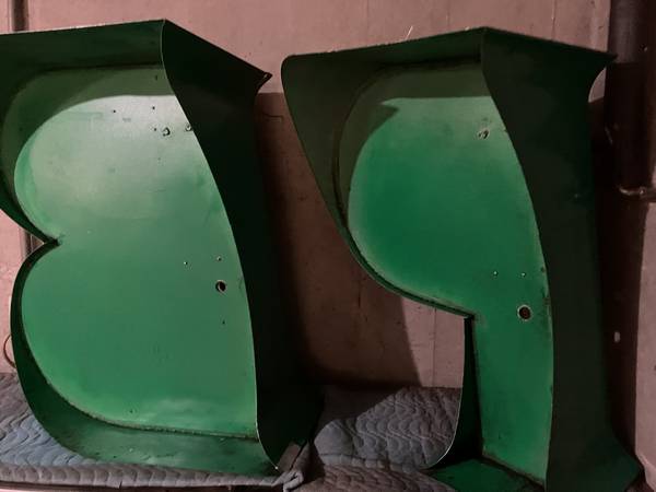 Signs are in very nice shape. Plastic lettering is solid with no cracking. Galvanized metal in good shape. Paint very decent with minimal touchup needed. Transformer and neon is ready for power. Never checked but should be able to light if desired.
