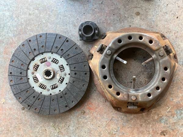 12” clutch, pressure plate, and throw out bearing for 351 Windsor came out of a one ton dump truck, very few miles on this clutch as evident in the pictures. Local pickup only.