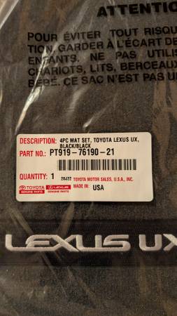 Brand New Lexus UX floor mats and cargo liner. Dark grey/black. factory sealed.