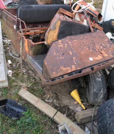 I got it with the intentions of putting an engine on it but I got a ez-go workhorse golf cart. It's electric. I have no idea what it would take to make it run again other than it's going to need batteries, tires,rear springs,ect. Message me with any questions. It's getting scrapped on Friday if it doesn't sell I am tired of looking at it