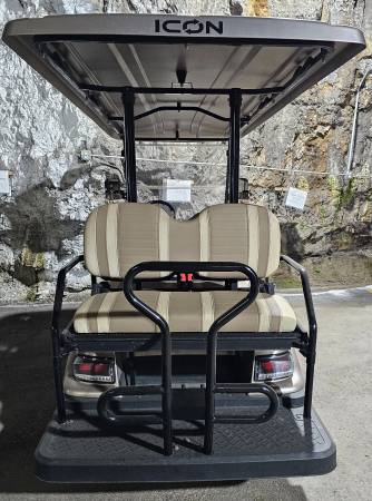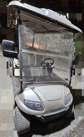 Like-new 2022 ICON i60 Golf Cart in Champagne 2-Tone. Lightly used indoors only—no weather exposure. Equipped with AGM batteries, fold-down rear seat, and roof canopy. Save 50% off purchase price.