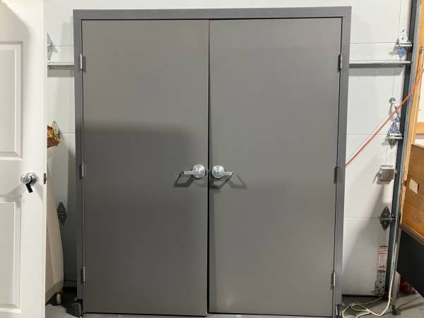 Haworth E & H Series, cubicle walls & double metal doors. Double door 71”W x 82”H. Cubicle panels; (4) 47”W x 6’-10”H, (6) 35”W x 6’-10”H, (2) 29”W x 6’-10”H, (2) 23” x 6’-10”H, (4) 17”W x...