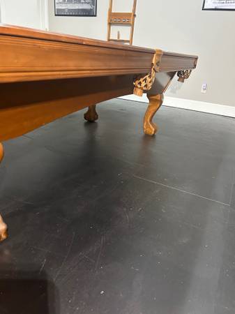 This 3 pc slate is in good condition. Comes with a good set of used balls, 2 cues, rack, and chalk. It will need new cloth. Delivery and setup is available and is negotiable.