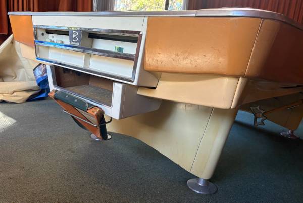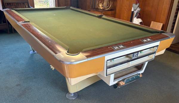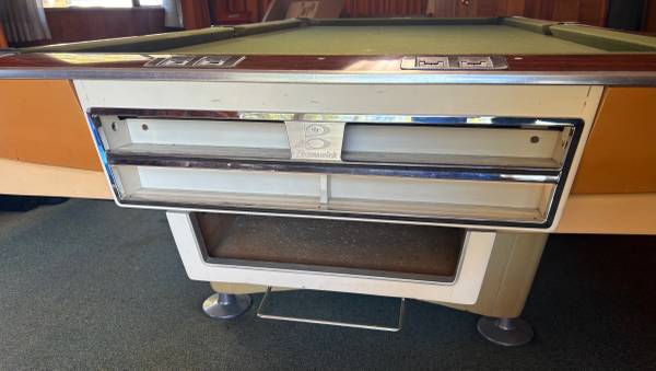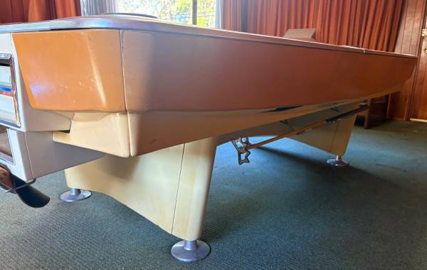 This table is in excellent condition as the pics show. It will need new cloth. I can put new cloth on and deliver for an additional cost. The rubber is good. The table doesn't come with the apron...