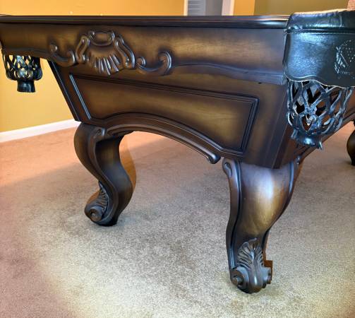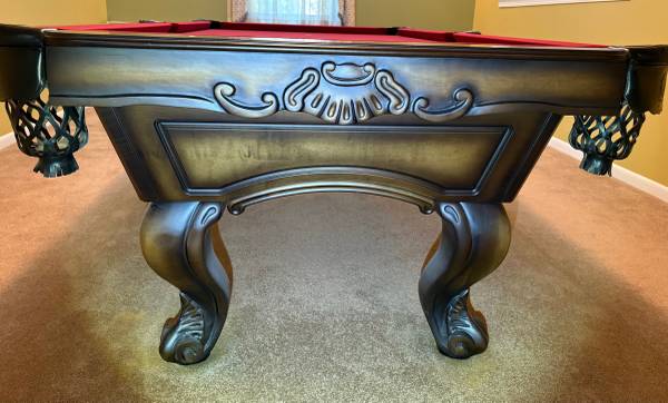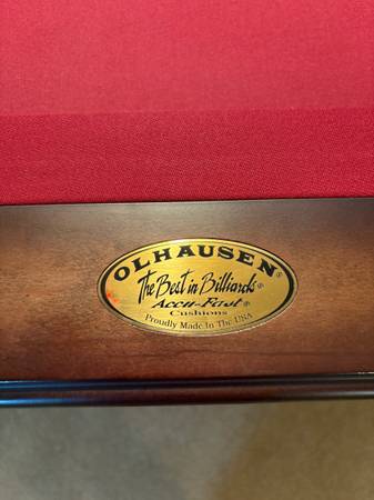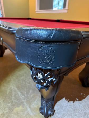 This pool table is in like new condition in every way as the pics show. Included is the burgundy Simonis that is on the table and is in excellent condition. Included is a good used playing package....
