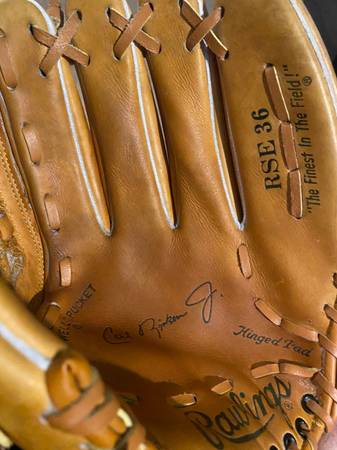 RSE-36 Cal Ripken Jr signature model. 12 1/2” length. Interior Palm pad in excellent shape, no wear or tears. Glove treated with Rawlings glove oil and is in almost perfect condition. No scuffs, no bad laces, everything is sound and the leather is supple. The kid I bought it for didn’t like it (not a 44 brand glove). I’d keep it for myself, but I’m old and past my baseball fielding prime. If you are into gloves that don’t need to be rebuilt, this one could be it. It’s in beautiful shape.