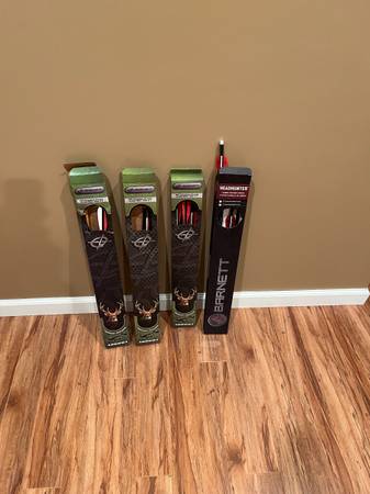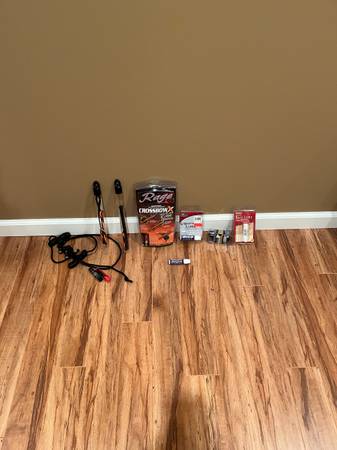 Sale includes 5 packs of headhunter arrows, sling, hard case, wax and rail lubes, extra set of new strings, 8 Rage broadheads, and practice tips. Extras worth price of crossbow itself.