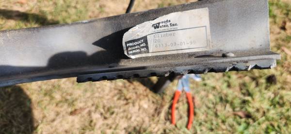 Woods & Water brand name Climbing tree Stand with climbing aid, painted camo. Used very little.