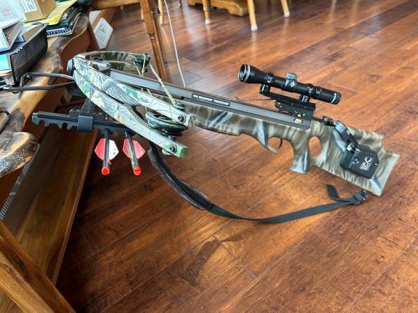 Older crossbow Model 458 Magnum Treestand Serial 20677 With accudraw Horton Crossbow scope Cash only 724-992-nine seven six three