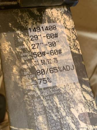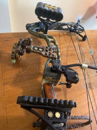 Browning single cam bow.Illusion.50-60 lb, 70-80 % let off. 29 in draw length (adjustable). Included equipment:Trophy Ridge quiver (holds 5), Trap door inertia rest, Trophy Ridge single pin pendulum sight, peep , wrist strap, and d loop (wood handle). Stabilizer can be included. Cam adjustable by rotating cam. $150 (ARROWS AND RELEASES SEPARATE)