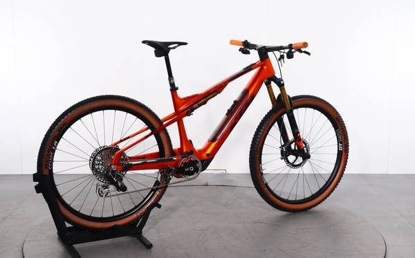 The Macina Scarp SX Exonic is a high-quality e-mountain bike from KTM with a lightweight carbon frame and full suspension design (Fully). It has a powerful Bosch Performance Line SX mid-motor with 250 watts and a 400 Wh Bosch CompactTUBE battery, which is designed for long tours. The 29-inch wheels and 140 mm front and rear travel ensure optimal control and off-road comfort. Equipped with a precise 12-speed derailleur from Sram XX Eagle and hydraulic disc brakes from Shimano XTR, this MTB offers excellent performance and safety. The RockShox Reverb AXS seatpost with wireless operation completes the modern setup. With a permissible total weight of 110 kg, the Macina Scarp SX Exonic is ideal for demanding off-road adventures.
