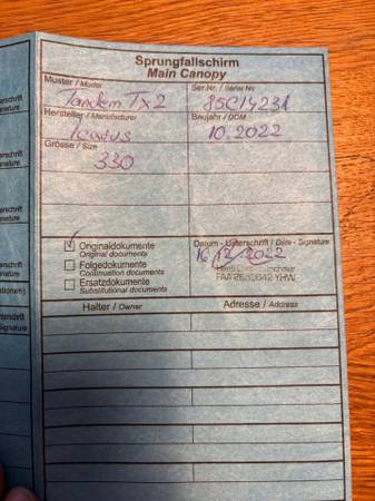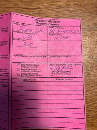 For Sale Micro Sigma, manufactured 09/22, 188 jumps TX2 330, manufactured 10/22, 188 jumps Reserve Sigma SR 340, manufactured 11/22, 1 jump PAX, manufactured 09/22 Airworthy until 01/08/2026