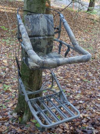 Summit Viper climbing deer stand enabling you to hunt just about anywhere with complete mobility ansd saferty, much safer than the "hang on with your arms for climbing" model . If you know how to "stand up" and "sit down", you can climb trees with this Summit Viper. And the bar that you sit on while climbing is your shooting rail when using a crossbow, rifle or shotgun. It remains in excellent condition and is comfortable for long stays in your favorite hunting woods, with a soft seat and padded backrest. It has a 300 lb capacity, so you won't have to diet to use it. Includes a body harness for added safety while hunting. Check current prices for these climbing stands and you will see that I am value priced. Look at the pictures and then e-mail to make it yours!